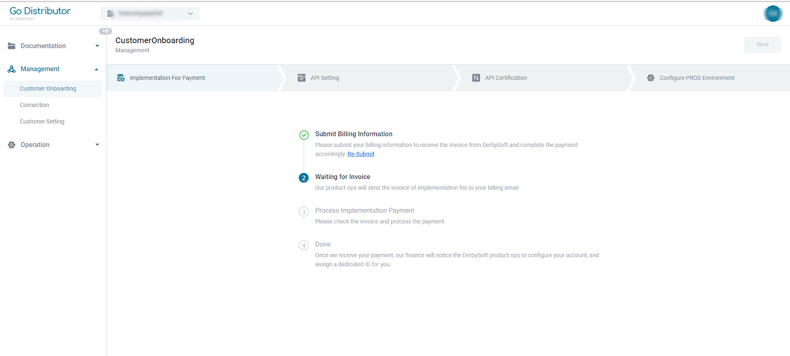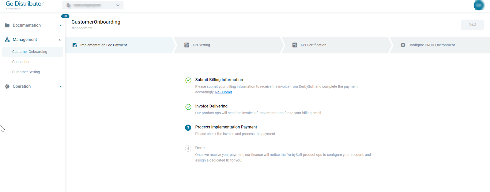 Step 1: Implementation Fee Invoicing