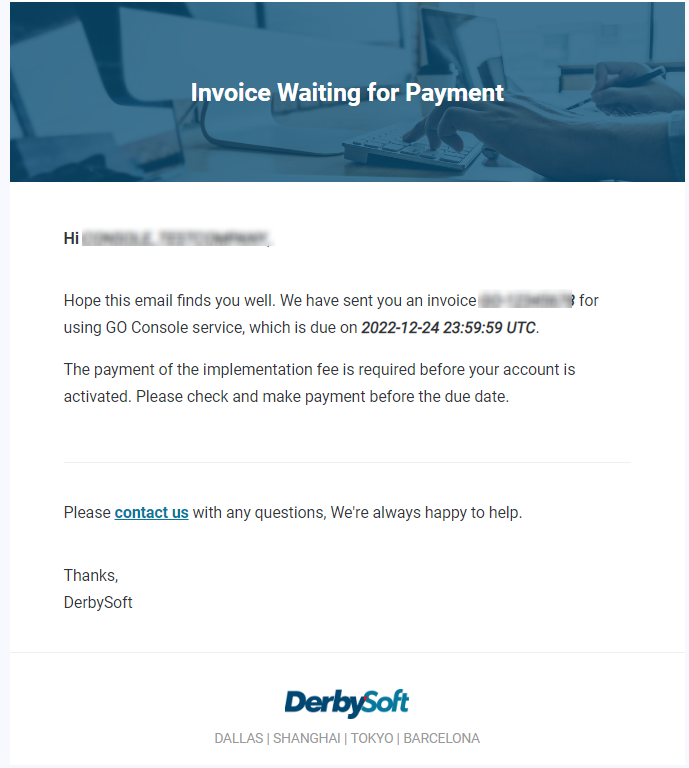 Receive E-Invoice: Our DerbySoft support team will then send the e-invoice to your provided email address.