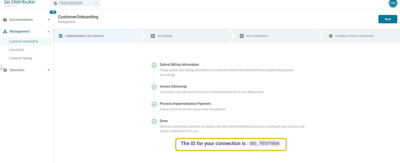 This invoice will be for the one-time implementation fee, as agreed in your contract, which is required to access the GO services.
