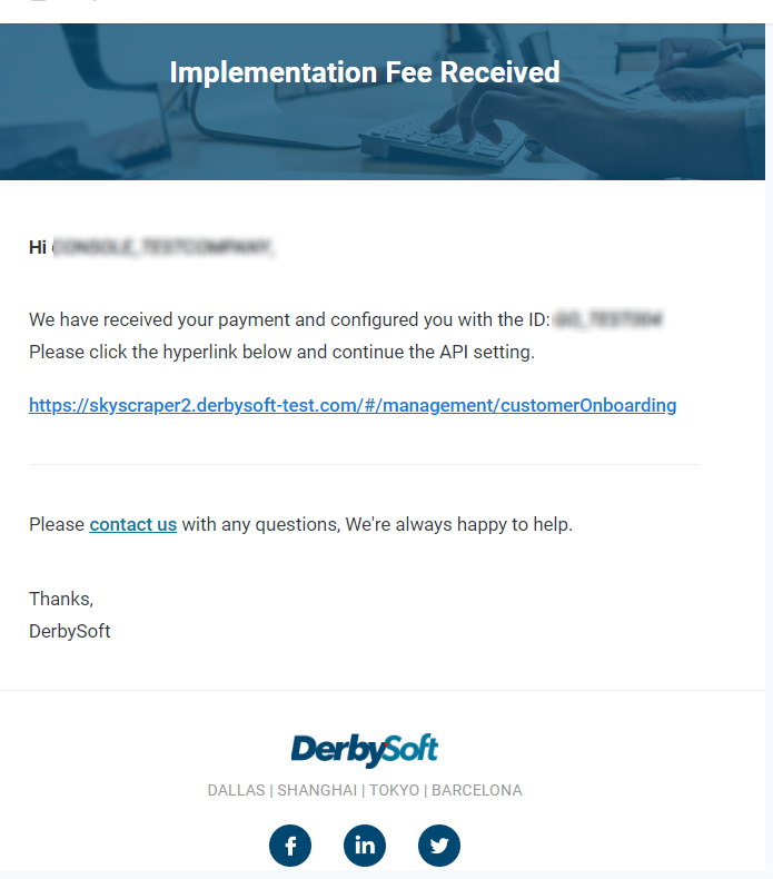 Once the Implementation Fee payment is received, the DerbySoft support team will activate your account and assign you a customer ID.