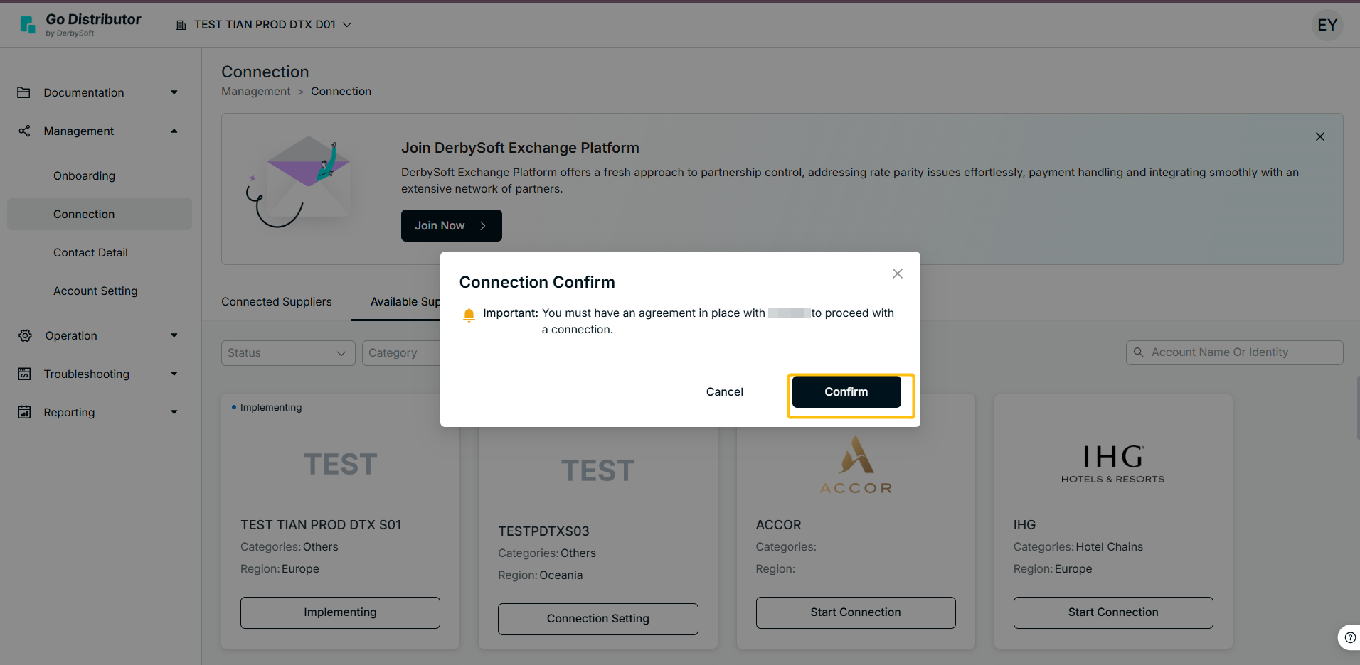 - Ensure that selected suppliers are notified about the utilization of DerbySoft services and, if required, have passed certification.