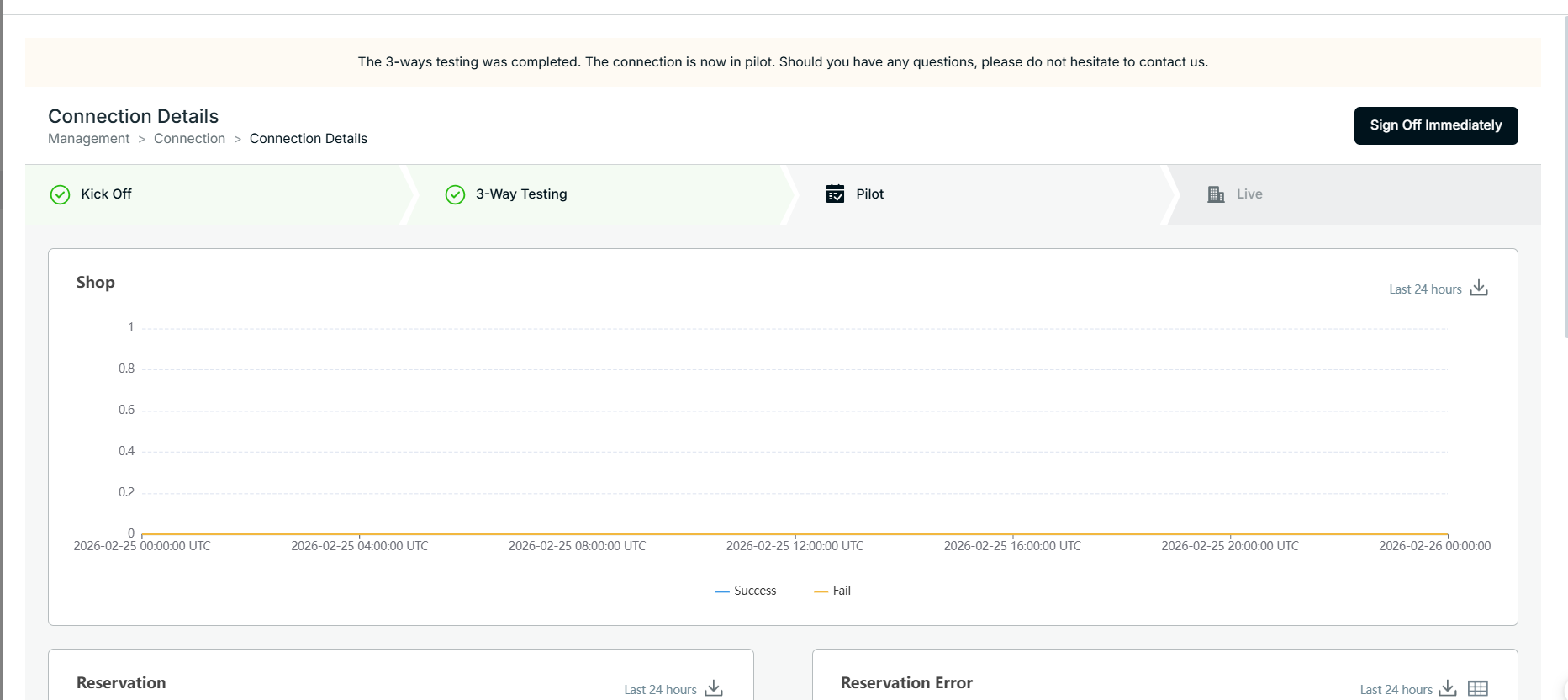 Click Sign off to proceed with the connectivity. If you are connecting to a Go Supply customer. Please wait for the other party to sign off before going live.